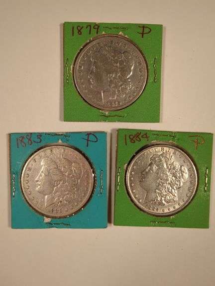 LOT 182 - 1879-P, 1883-P, and 1884-P Morgan Silver Dollar Coins