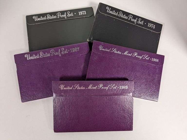 LOT 328 - 1973, 1974, 1987, 1988, 1989 U.S. Proof Coin Sets